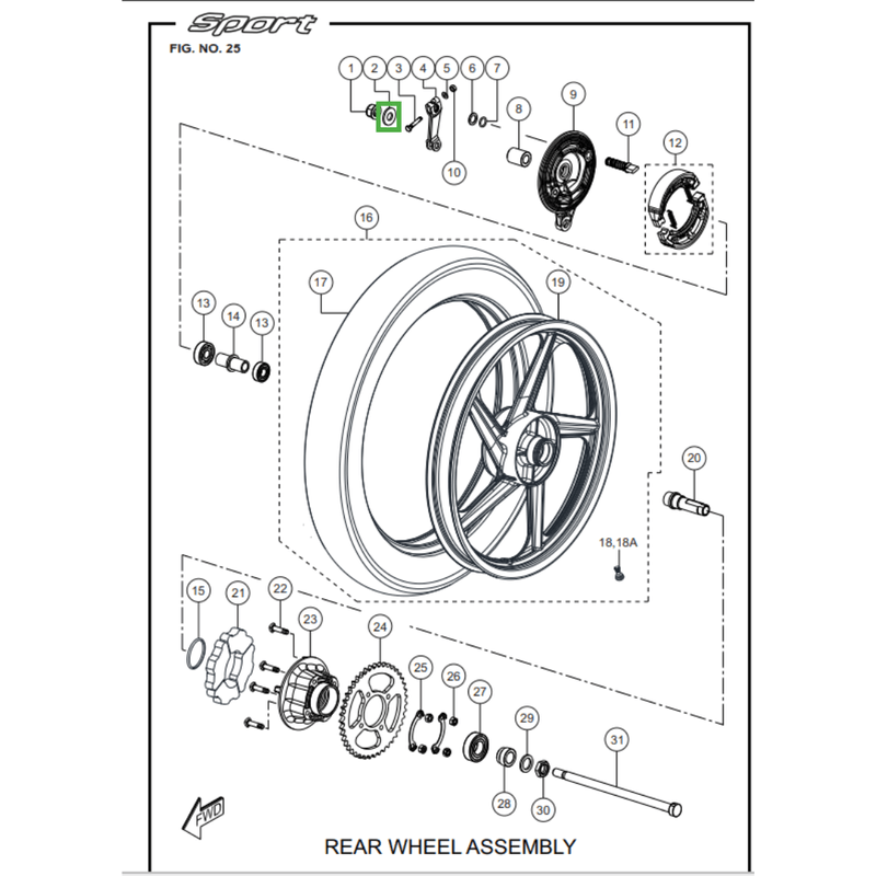 Componente de apoio instalado externamente junto à porca do eixo traseiro, responsável por distribuir a carga do aperto e garantir a fixação correta do conjunto da roda traseira. A arruela contribui para o alinhamento adequado do eixo, evita danos às superfícies de contato e reduz o risco de afrouxamento. Fabricada em material resistente, é indicada para reposição em casos de desgaste, deformação ou perda da peça original.