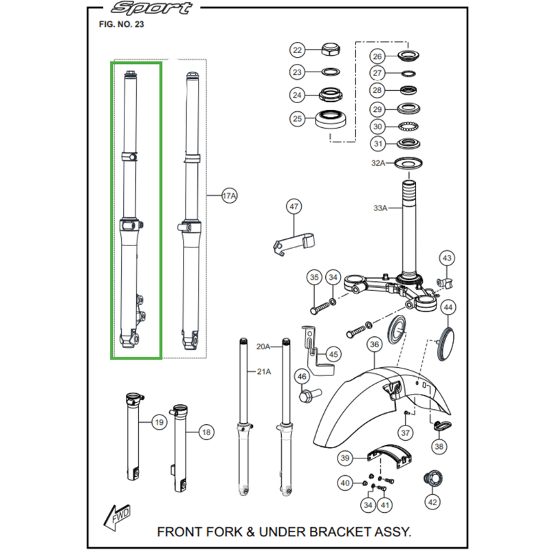 Bengala Direita Sport ESD Componente essencial da suspensão da motocicleta, responsável por