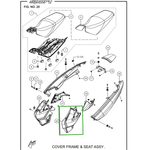 A carenagem lateral interna esquerda é responsável por proteger os componentes internos da moto, como fiação e sistema de transmissão, além de contribuir para a estética e acabamento do veículo. Essencial para substituição de peças danificadas ou manutenção da integridade estrutural da moto.