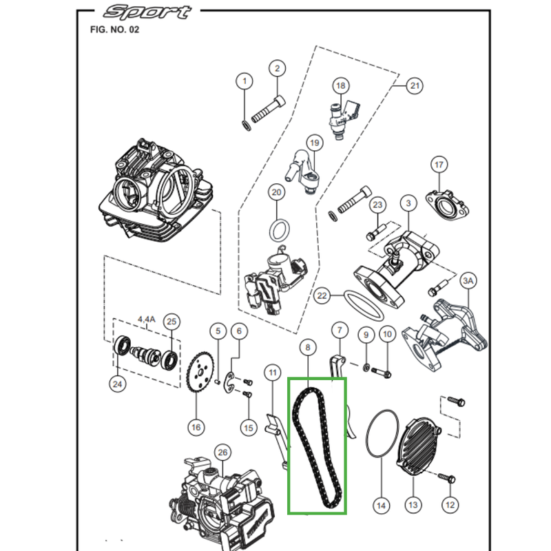 corrente de comando para Sport 110i KS/ESD assegura sincronização precisa, funcionamento suave e desempenho confiável do motor. Fabricada com materiais de alta resistência, oferece durabilidade superior e substituição precisa da peça original, sendo essencial para o funcionamento adequado do motor.