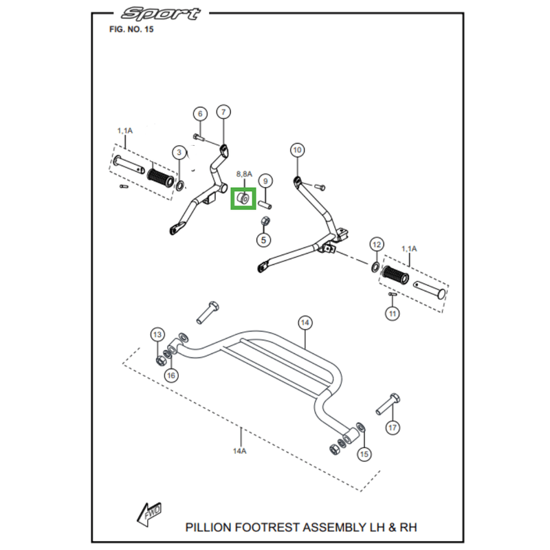 O coxim de borracha do espaçador do pedal de apoio é responsável por absorver impactos e vibrações, garantindo firmeza e estabilidade ao pedal de apoio. Essencial para substituição de coxins desgastados e manutenção do conforto e segurança na pilotagem.