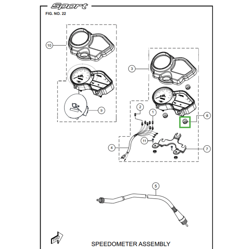 Componente de borracha utilizado na fixação do painel de instrumentos, responsável por absorver vibrações e impactos provenientes do funcionamento da motocicleta. Evita o contato direto do painel com a estrutura metálica, reduzindo ruídos, folgas e o risco de danos ao conjunto. Essencial para garantir estabilidade, melhor acabamento e maior durabilidade do painel de instrumentos, sendo indicado para reposição em casos de desgaste, ressecamento ou perda do coxim original.
