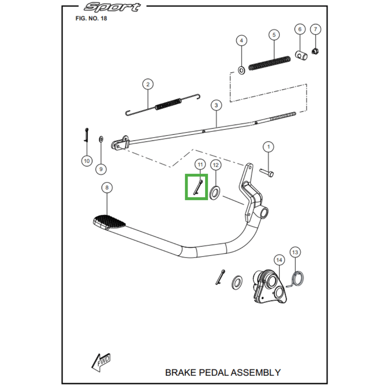 Componente de fixação utilizado no sistema de freio traseiro, responsável por travar pinos e porcas, evitando que se soltem durante o funcionamento da motocicleta. Essencial para a segurança e confiabilidade do conjunto de frenagem, a cupilha grande garante a manutenção correta do ajuste e a estabilidade das peças do freio traseiro da Mottu Sport KS/ESD.