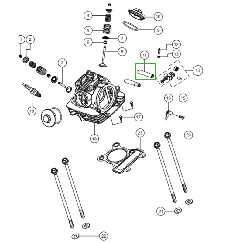 Componente do sistema de comando de válvulas do motor da Sport KS/ESD, responsável por servir de eixo de apoio e articulação do balancim. O eixo de aço do balancim garante alinhamento correto, resistência mecânica e funcionamento suave do conjunto, contribuindo para o acionamento preciso das válvulas, o desempenho do motor e a durabilidade dos componentes internos.