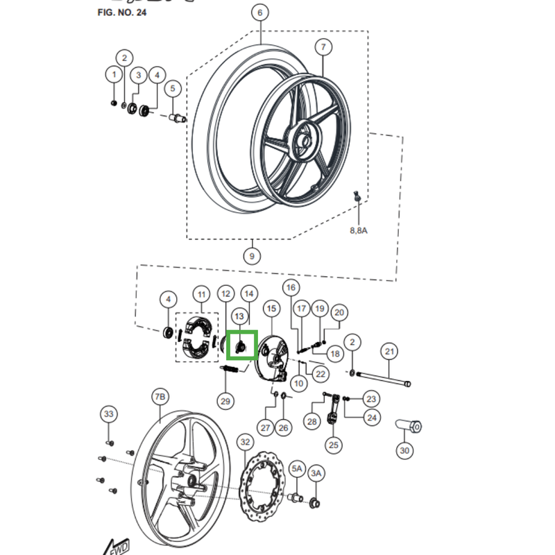 Componente do sistema de medição de velocidade, responsável por transmitir o movimento da roda ao velocímetro. Essencial para o funcionamento correto da indicação de velocidade da motocicleta.