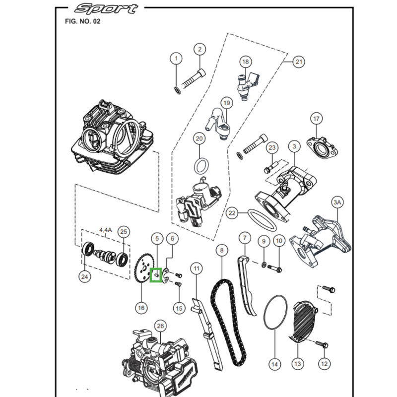 Componente do sistema de comando de válvulas do motor da Sport KS/ESD, responsável por guiar e posicionar corretamente o pino de aço da árvore de comando. O guia do pino de aço da árvore de comando garante alinhamento preciso, funcionamento suave do conjunto e redução de desgaste, contribuindo para o sincronismo adequado, desempenho e durabilidade do motor.