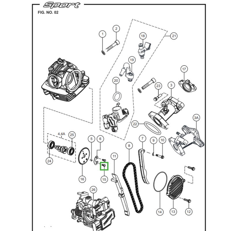 Componente de fixação utilizado no sistema de comando de válvulas da Sport KS/ESD, identificado como parafuso sextavado M5x10, rosca passo 1, classe de resistência 8.8, acabamento ZD. Sendo responsável por garantir fixação segura, alinhamento correto e estabilidade do conjunto, contribuindo para o sincronismo preciso e o funcionamento confiável.