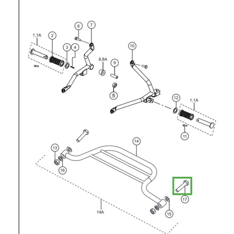 Componente de fixação utilizado na Sport 110i KS/ESD, o parafuso sextavado M8x35, classe 6.8, acabamento ZNB, garantindo fixação segura, alinhamento correto e estabilidade do mecanismo. Fabricado para suportar esforços mecânicos, prevenindo folgas e assegurando durabilidade e confiabilidade do sistema.