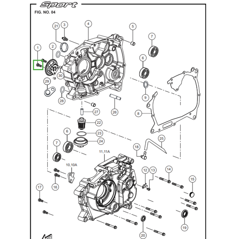Componente de fixação utilizado no conjunto do motor da Sport KS/ESD, identificado como parafuso sextavado flangeado M6x35, rosca passo 1.0, classe 8, acabamento ZD. Aplicado na fixação da bomba de óleo, tampa da embreagem e paralama traseiro, garante aperto seguro, alinhamento correto e estabilidade dos componentes, contribuindo para o funcionamento confiável, a integridade estrutural e a durabilidade do conjunto.