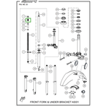 Componente de fixação instalado internamente na bengala da suspensão dianteira, responsável por travar e manter corretamente posicionados os componentes internos do conjunto. A porca garante a estabilidade e o funcionamento adequado da suspensão, contribuindo para o alinhamento e a absorção correta dos impactos. Fabricada em material resistente, é indicada para reposição em casos de desgaste, deformação ou dano da peça original.
