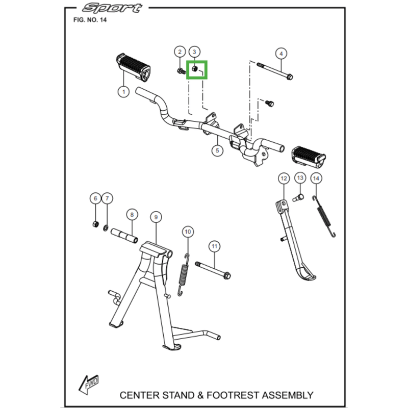 PORCA SEXTAVA M8 DO ESTRIBO / CAVALETE (APOIO LATERAL) - Sport 110i KS/ESD