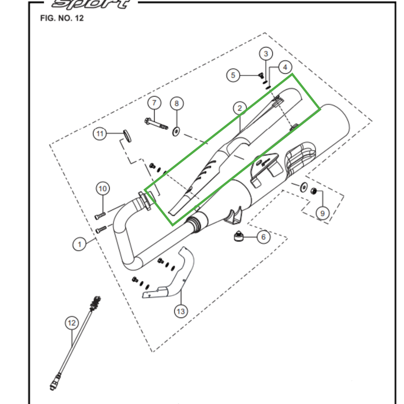 O protetor do escapamento é responsável por proteger o piloto e passageiro contra queimaduras pelo calor do escapamento, além de contribuir para o acabamento estético da motocicleta. Essencial para substituição do protetor danificado ou manutenção da segurança do sistema de exaustão.